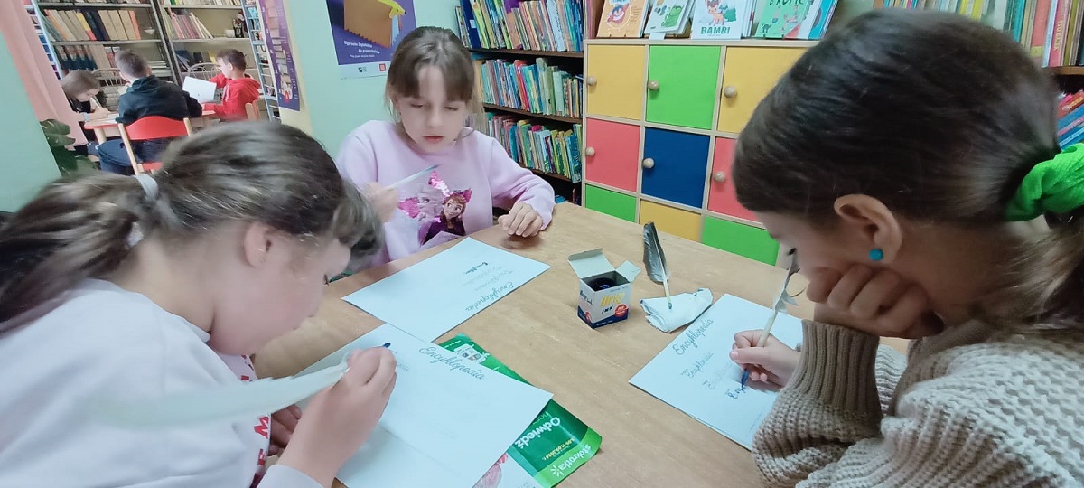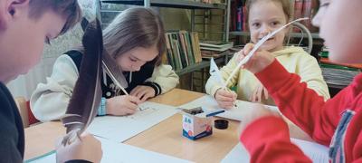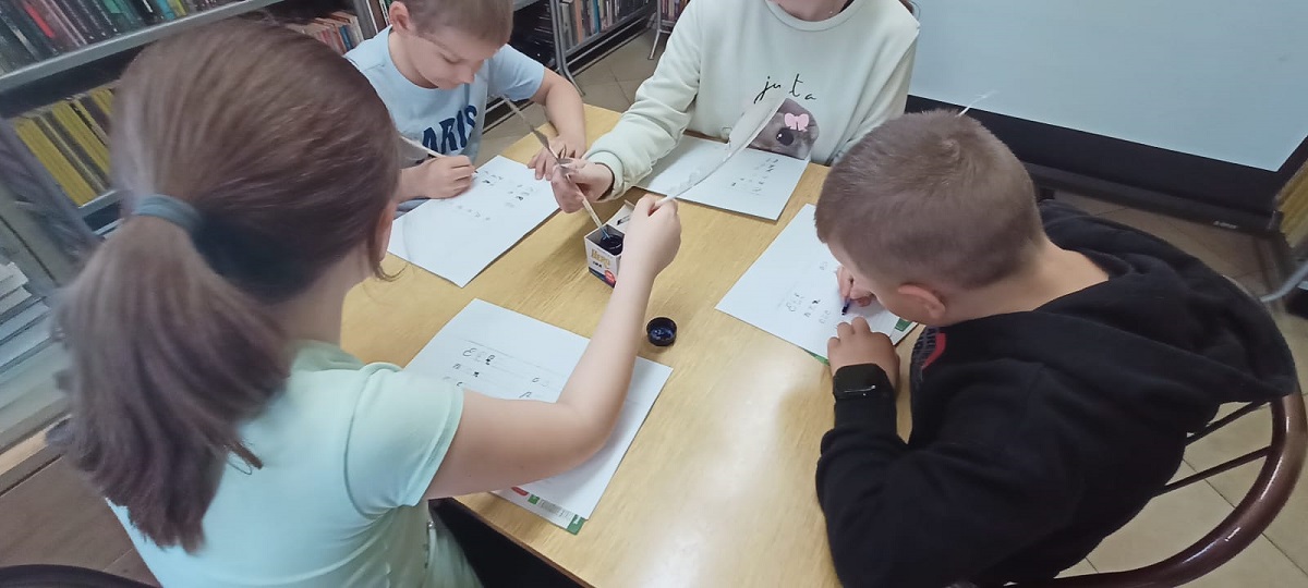 W filii Biblioteki Zakrzew - w Dębinie uczniowie klasy II i III wzięli udział w warsztatach kaligrafii. Na zajęciach dzieci zgłębiły pojęcie "kaligrafia ", rozmawiały o tym, jakie pisma i dokumenty warto pisać ręcznie i starannie.