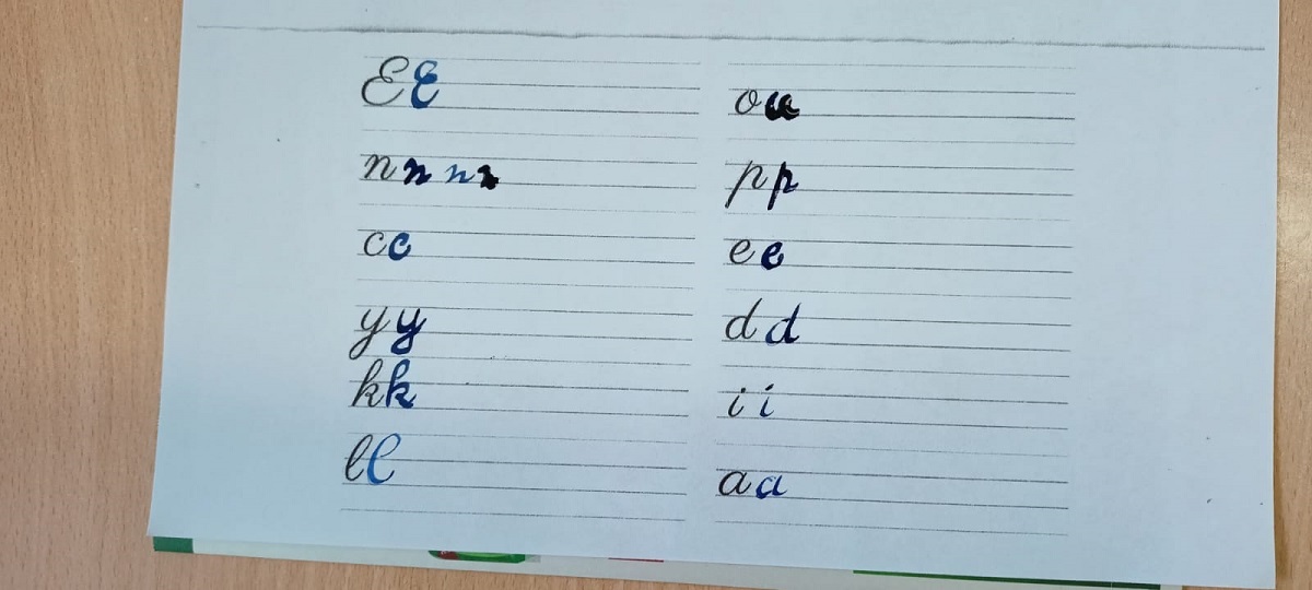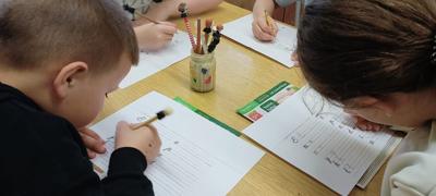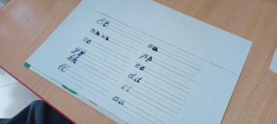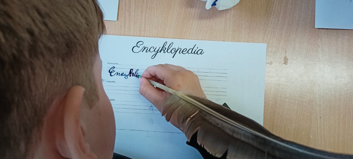 Podsumowaniem zajęć było ćwiczenie piśmiennicze polegające na pisaniu liter, a następnie wyrazów z wykorzystaniem różnych narzędzi piśmienniczych oraz uwzględnieniem kaligrafii.