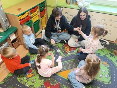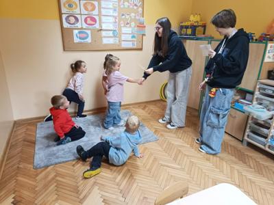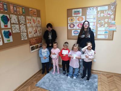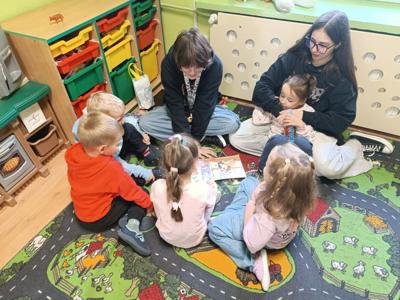 W dniu 29 września, z okazji Ogólnopolskiego Dnia Głośnego Czytania, uczennice klasy VIII- Tosia i Helena odwiedziły dzieci z oddziału przedszkolnego. Starsze uczennice zaprezentowały maluchom  bajki o przygodach Bingo i Bluey, które z zaciekawieniem i uśmiechem zostały wysłuchane przez przedszkolaków.