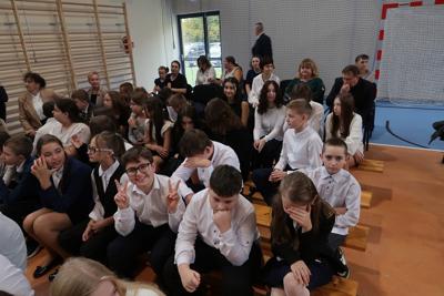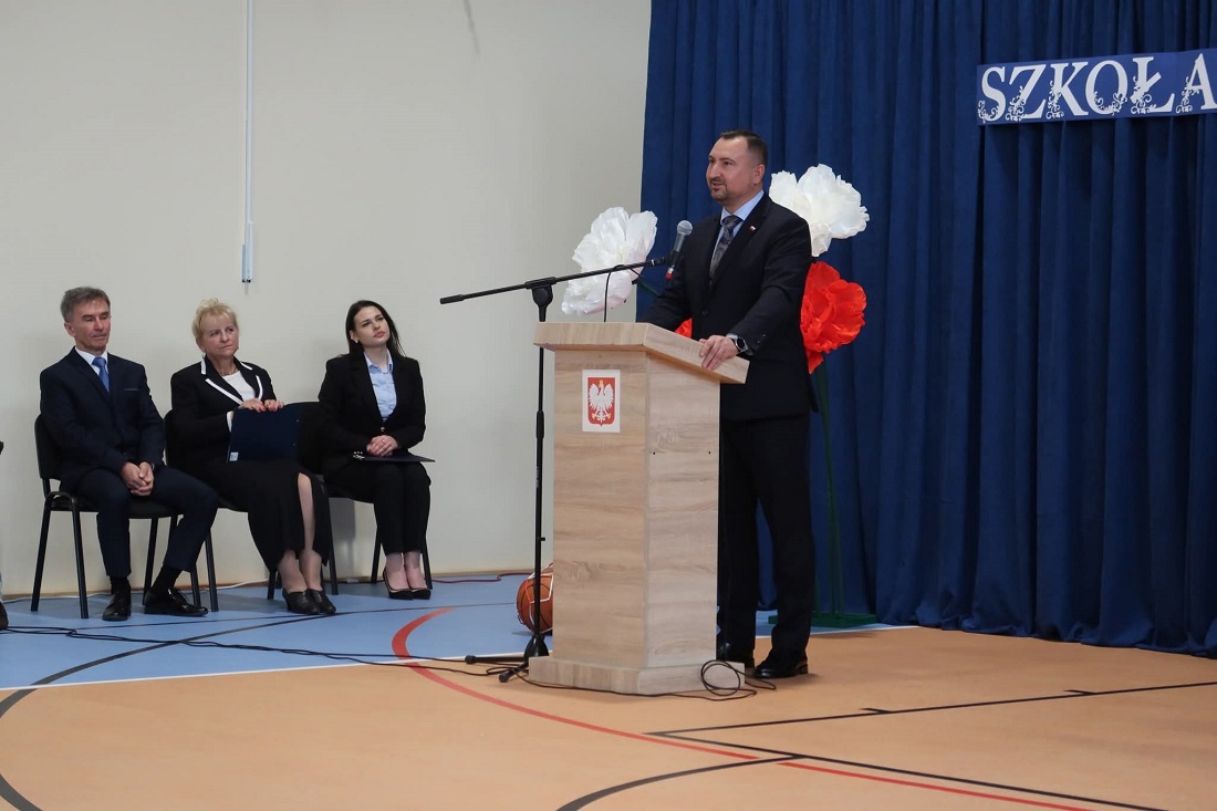 Na wstępie Pan Dyrektor Krzysztof Smerdel powitał Gości, którzy zaszczycili nas swoją obecnością. W tym ważnym dla szkoły dniu byli z nami: Ksiądz Kanonik Marek Goch, Starszy Wizytator Kuratorium Oświaty w Lublinie Pani Elżbieta Sobiech, Wicemarszałek Województwa Lubelskiego Pan Marek Wojciechowski, Radna Powiatu Lubelskiego Pani Beata Gajur, Wójt Gminy Zakrzew Pani Teodora Zaręba, Z – ca Wójta Gminy Zakrzew Pan Mariusz Widomski, Przewodnicząca Rady Gminy Zakrzew Pani Mariola Skrzypek, Sekretarz Gminy Zakrzew Pani Agnieszka Duma, Skarbnik Gminy Zakrzew Pan Bogdan Zych, Główny Księgowy ds. jednostek oświatowych Pani Urszula Stanicka, wieloletni emerytowany Dyrektor SP w Dębinie – obecnie członek rady Gminy Zakrzew Pani Zofia Dziwulska, Członkowie Rady Gminy Zakrzew – Pani Elżbieta Rożek, Pan Mirosław Kowalczyk, Pan Kamil Zielonka, Kierownik GOPS w Zakrzewie Pani Wanda Holweg, Dyrektor SP im. Jana Pawła II w Zakrzewie Pani Małgorzata Samol, Kierownik Biblioteki Publicznej Gminy Zakrzew i przewodnicząca KGW w Dębinie Pani Joanna Jarzyna, bibliotekarka Biblioteki Publicznej Gminy Zakrzew Filia w Dębinie Pani Urszula Tkaczyk, Pan Leszek Chmielnicki reprezentujący Kierownika Poradni Psychologiczno - Pedagogicznej w Bychawie Panią Agnieszkę Kośkiewicz, Członkowie Zarządu OSP w Dębinie na czele z Prezesem Panem Pawłem Sochą, Sołtys miejscowości Dębina Pani Magdalena Piasecka, Prezes firmy budowlanej REM – BUD Pan Kacper Rej, absolwenci oraz emerytowani nauczyciele i pracownicy Szkoły Podstawowej w Dębinie, a także przedstawiciele lokalnych instytucji i firm, z którymi współpracuje nasza szkoła.
