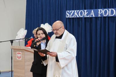 Uroczystość rozpoczęła się Mszą świętą, której przewodniczył Ksiądz Kanonik Marek Goch, Proboszcz parafii pw. św. Antoniego Padewskiego w Bożej Woli. W trakcie Mszy św. poświęcony został sztandar szkoły ufundowany przez Rodziców.