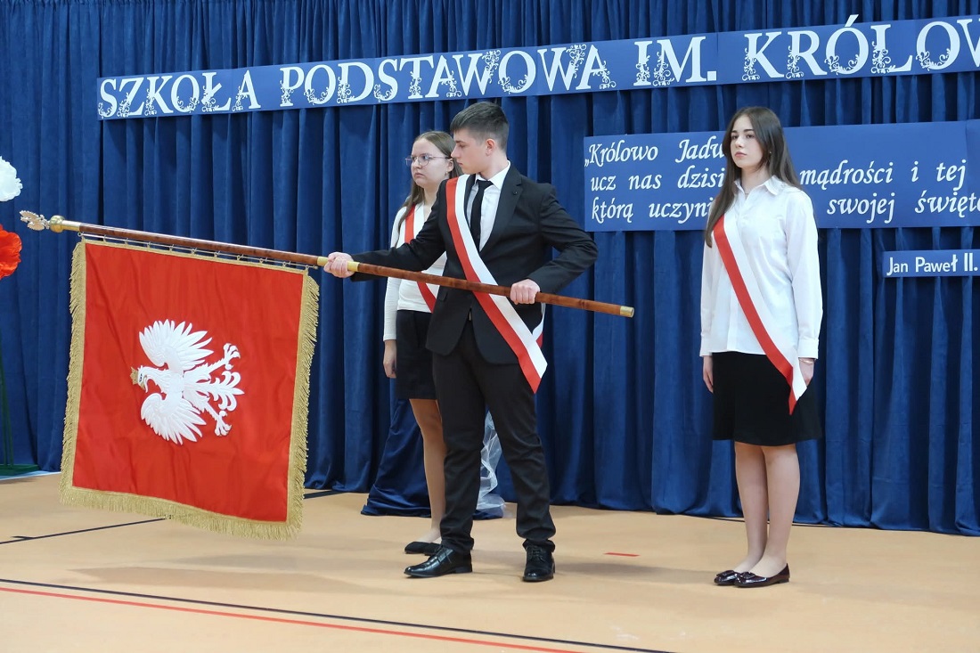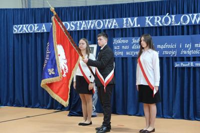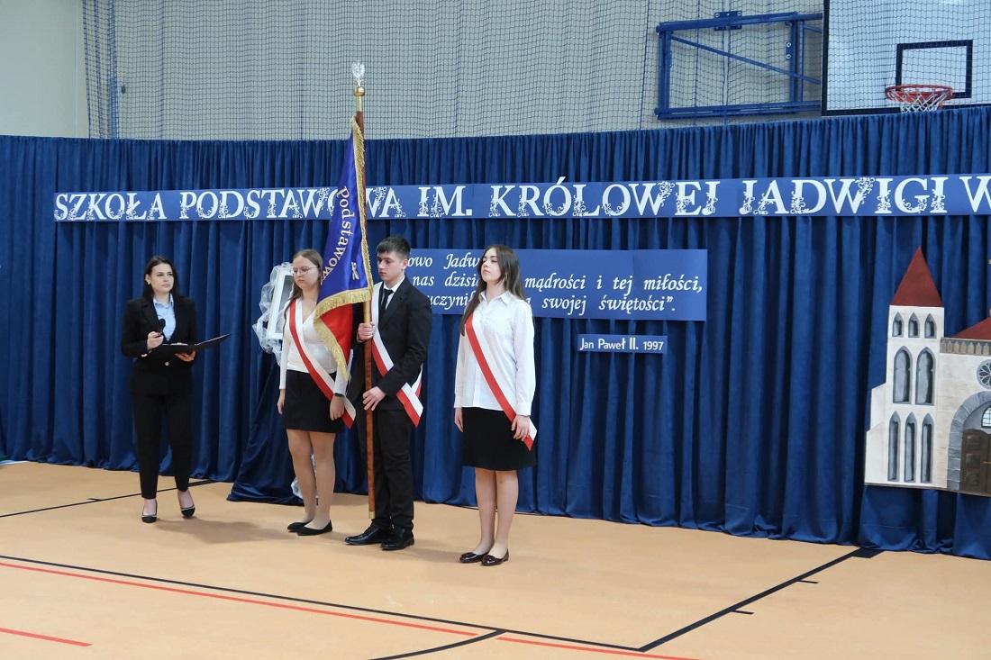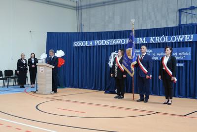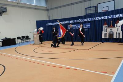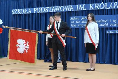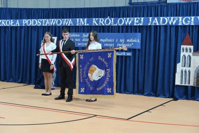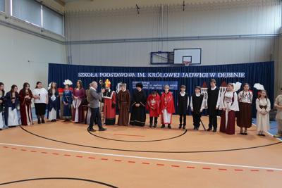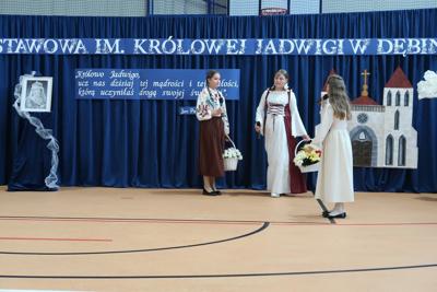 Po tym wydarzeniu odbyło się poświęcenie tablicy upamiętniającej nadanie Szkole Podstawowej w Dębinie imienia Królowej Jadwigi, ufundowanej przez Radę Pedagogiczną i Pracowników naszej szkoły.