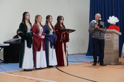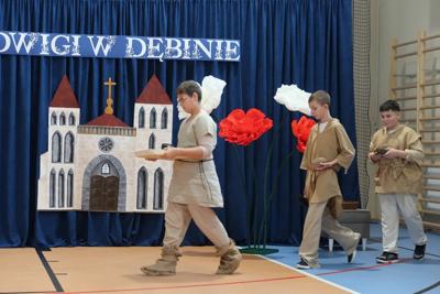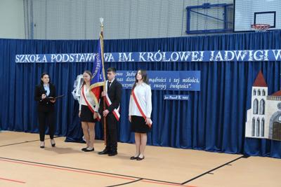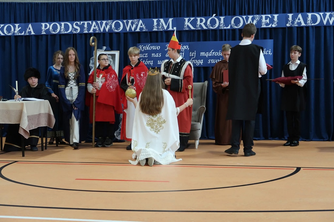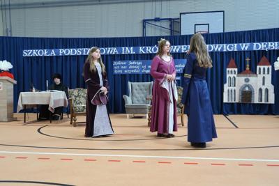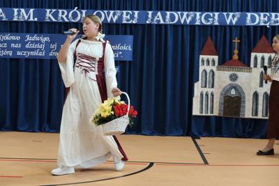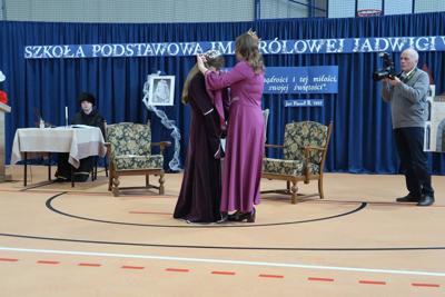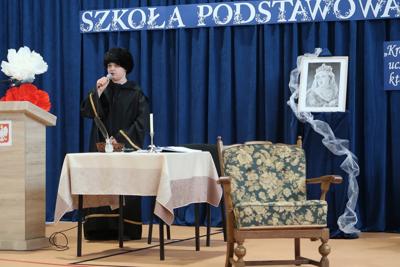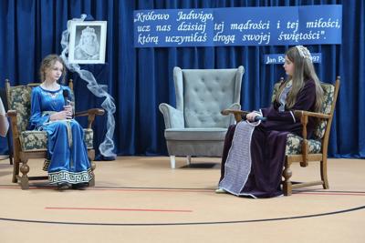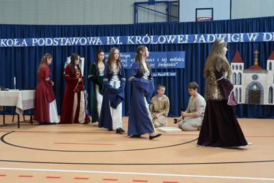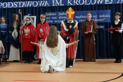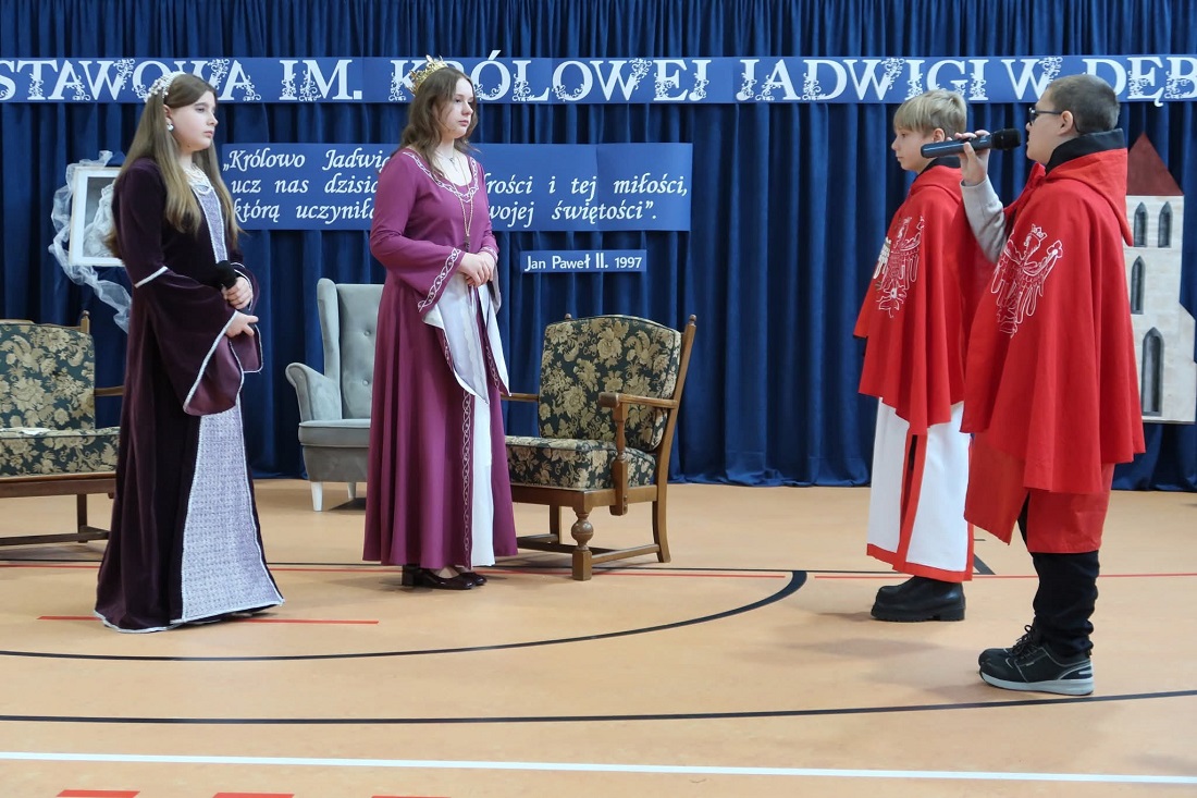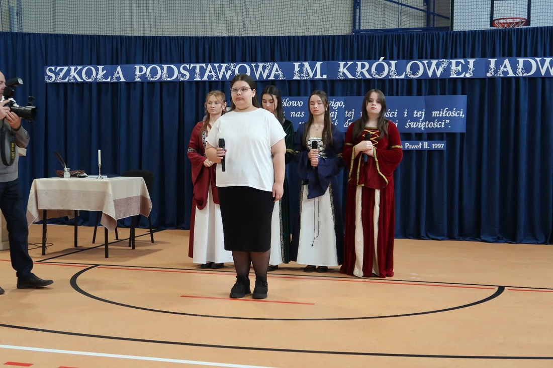 Po części oficjalnej uczniowie klas V- VIII zaprezentowali program artystyczny, który przybliżył zebranym postać naszej wspaniałej Patronki i wartości, którymi kierowała się w życiu. Wzruszenie na twarzach widzów, brawa i pochwały, które po zakończonej uroczystości padały pod adresem naszych szkolnych artystów, świadczą o tym, że inscenizacja dostarczyła Gościom niezapomnianych wrażeń. Dziękujemy Uczniom i Nauczycielom za zaangażowanie w przygotowanie tego programu, a Rodzicom za zorganizowanie strojów, które były dopełnieniem treści prezentowanych podczas części artystycznej.