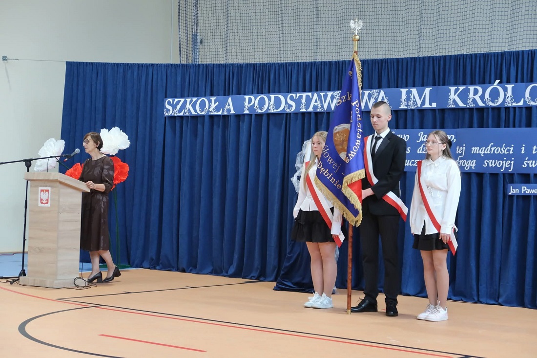 16 października 2025 roku świętowaliśmy nadanie Szkole Podstawowej w Dębinie imienia Królowej Jadwigi, poświęcenie i przekazanie sztandaru oraz otwarcie sali gimnastycznej.