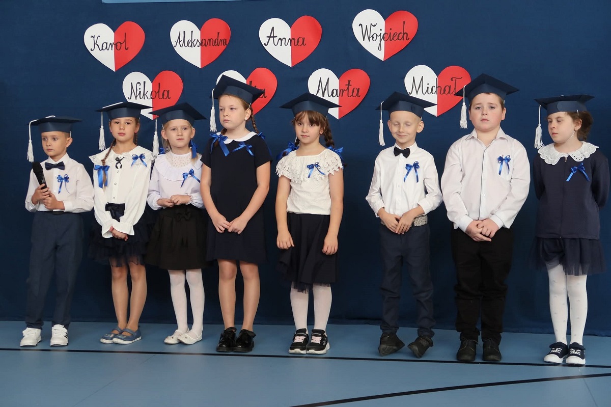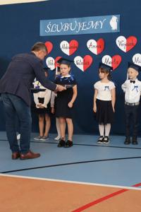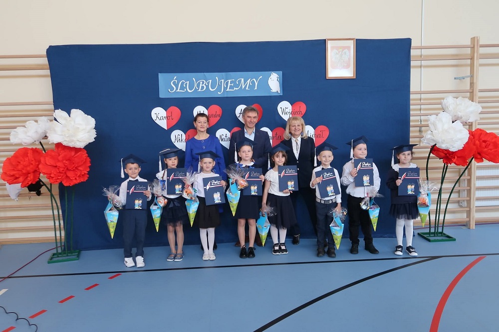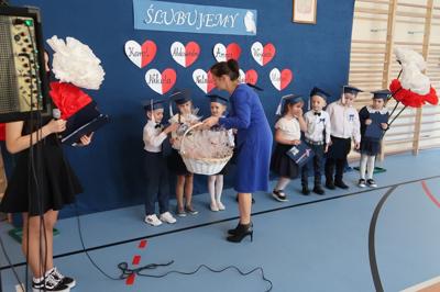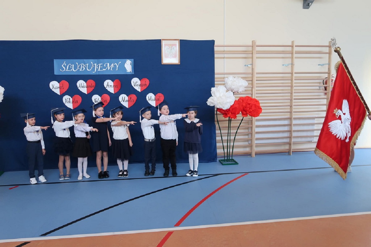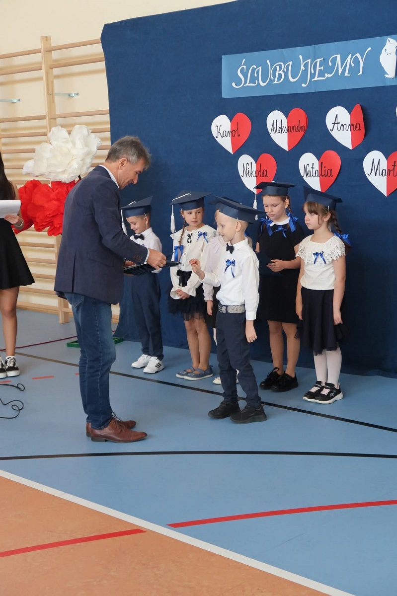Uroczystość rozpoczęła się od występu artystycznego przygotowanego przez uczniów klasy pierwszej. Dzieci zaprezentowały program słowno–muzyczny, w którym udowodniły, że są gotowe, by stać się prawdziwymi uczniami. Następnie w obecności Dyrekcji szkoły, Nauczycieli, Rodziców oraz zaproszonych Gości uczniowie złożyli uroczyste ślubowanie na sztandar szkoły. Po ślubowaniu Pan Dyrektor- Krzysztof Smerdel dokonała aktu pasowania na ucznia, dotykając ramienia każdego pierwszoklasisty symbolicznym ołówkiem.