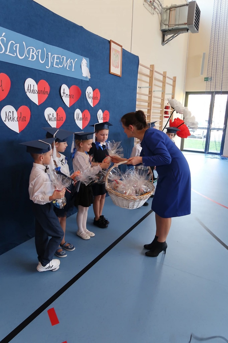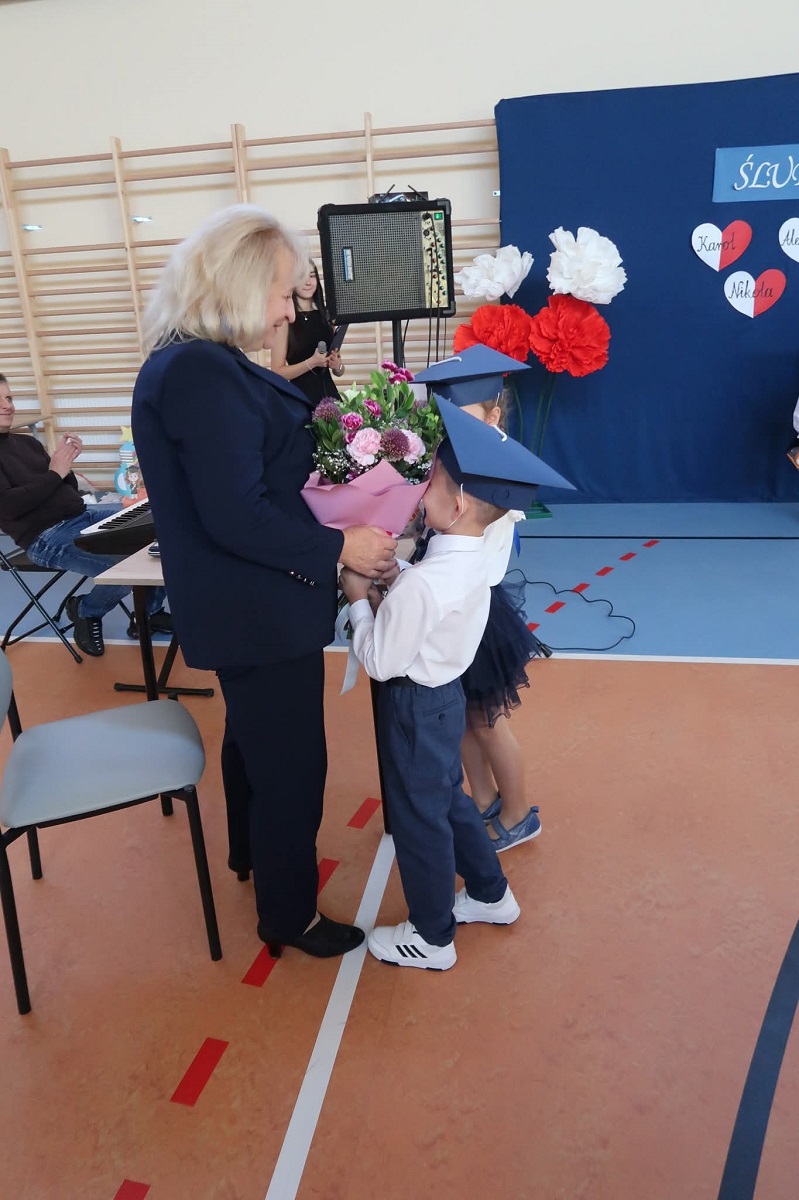 Po części oficjalnej przyszedł czas na gratulacje, wspólne zdjęcia oraz słodki poczęstunek. Składamy serdeczne podziękowania pani Wójt za obecność i miłe słowa skierowane do Dzieci, a także Rodzicom za przygotowanie poczęstunku i pomoc w organizacji uroczystości.